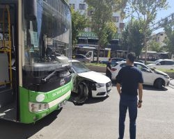 Batman'da belediye halk otobüsü ile 2 otomobilin karıştığı trafik kazas..