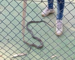 Görevli, vatandaşların ve özellikle çocukların zarar görmemesi için hızlıca müdahale ederek yılanı etkisiz hale getirdi.