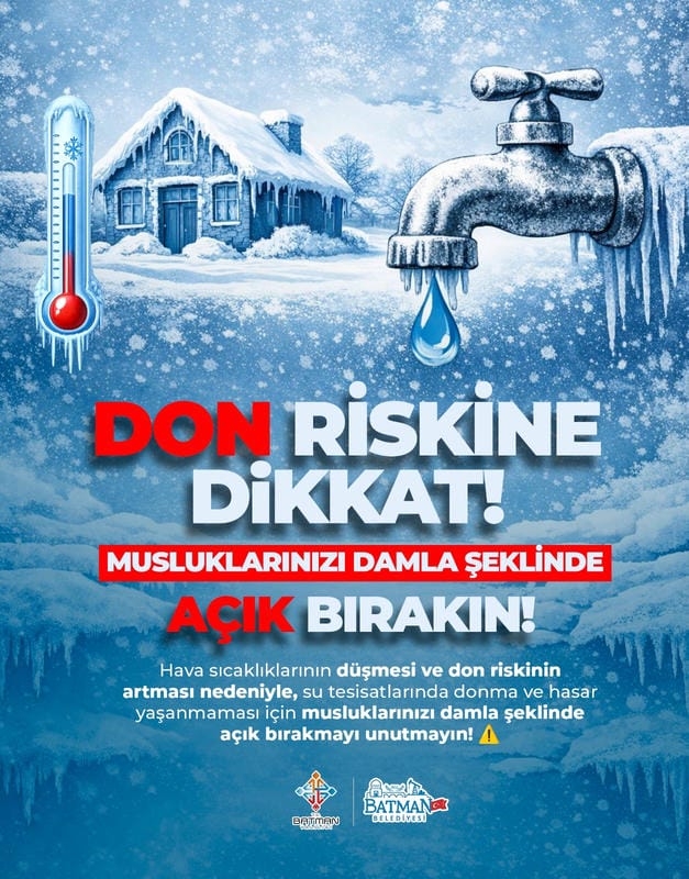 Yapılan açıklamada, özellikle gece saatlerinde yaşanabilecek don olaylarının su tesisatlarında ciddi hasarlara yol açabileceğine dikkat çekildi.