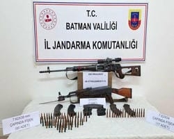 Yapılan aramada; 1 adet ruhsatsız AK-47 Kalaşnikof piyade tüfeği, 1 adet KNS Dragunov tüfeği, 7 adet şarjör, 80 adet 7.62x39 mm çapında fişek ile 17 adet 7.62x54 mm çapında fişek ele geçirildi.